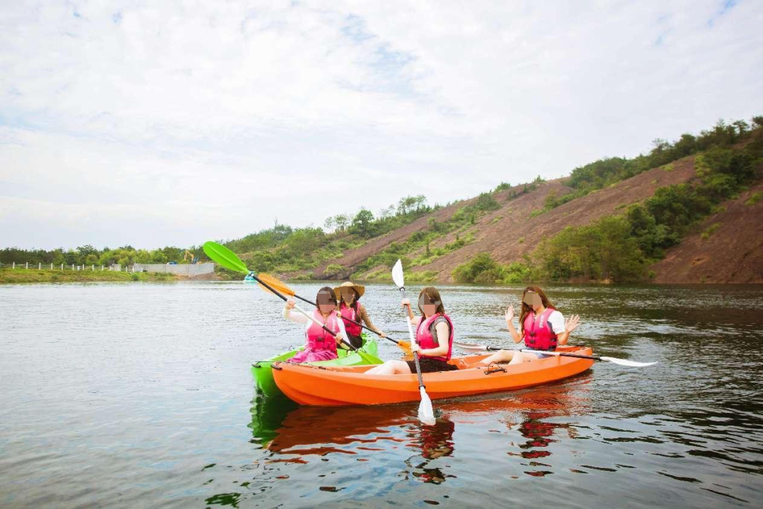 龟峰欢乐水世界的皮划艇项目,让游客能更亲近自然地感受水的魅力。皮划艇造型简约,操作起来全凭手中的划桨。游客可以独自驾驭,在平静的湖面悠然划行,享受独处的宁静,细细欣赏周边的美景。